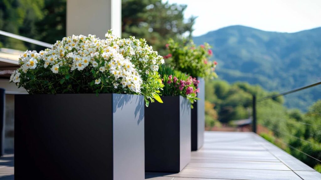 Hochwertig gestalteter Übertopf in Quadratform für moderne Terrassenlandschaften, kreative Balkone und individuelle Gartenräume.